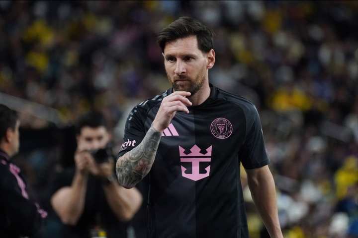 上半场第10分钟,梅西在弧顶处一脚凌空扣门踢偏。